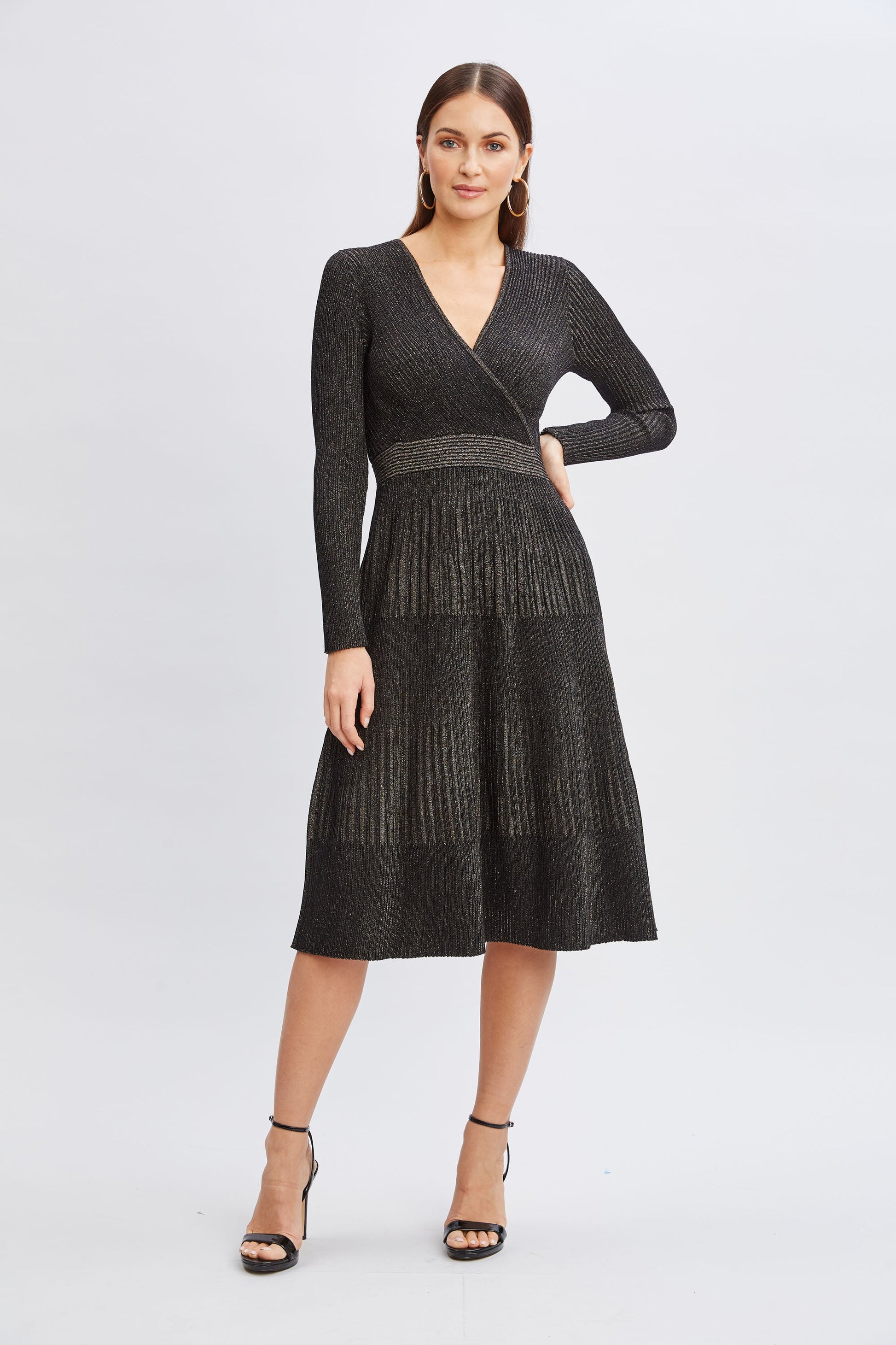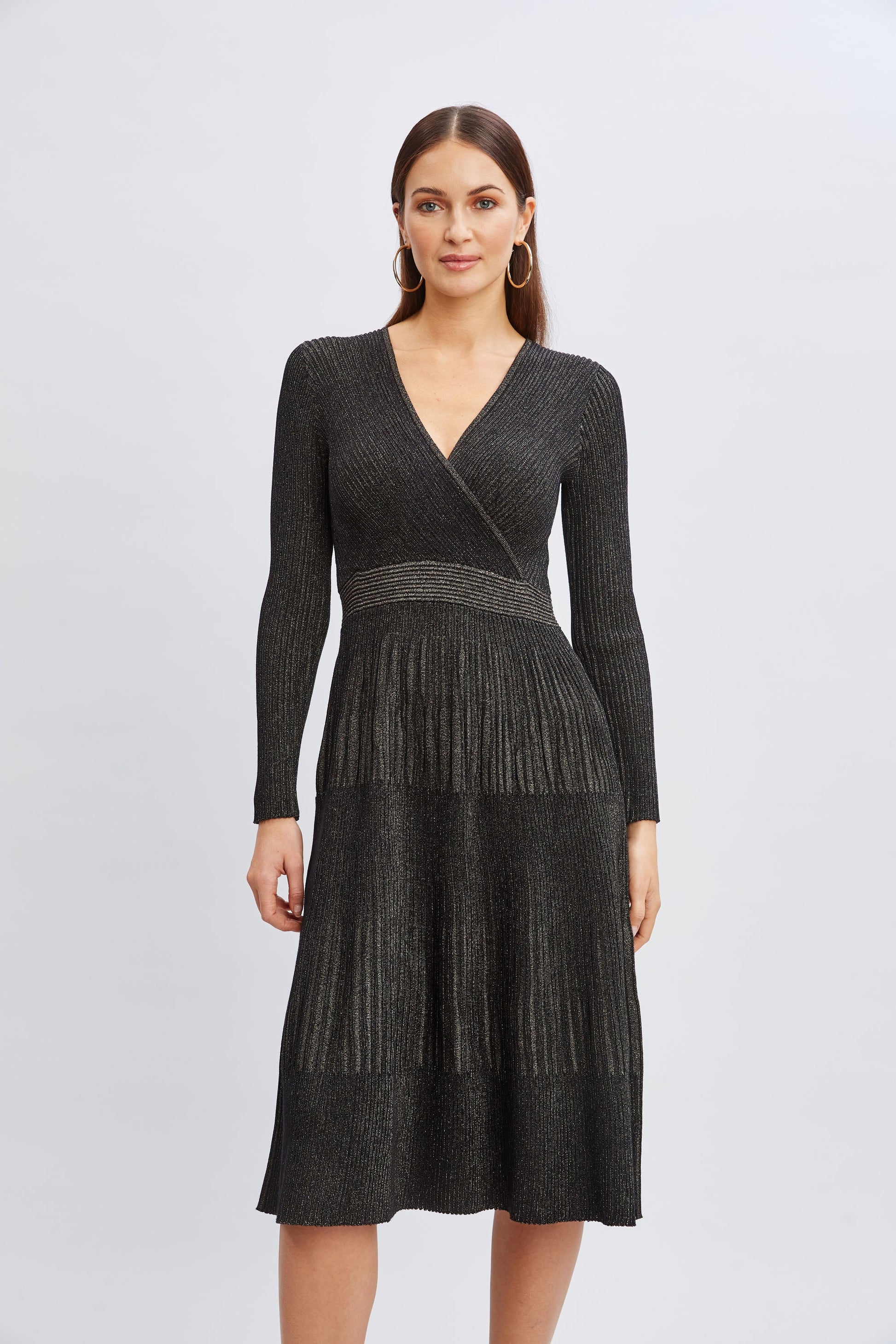 T-Tahari Lurex Mock Wrap Sweater Dress