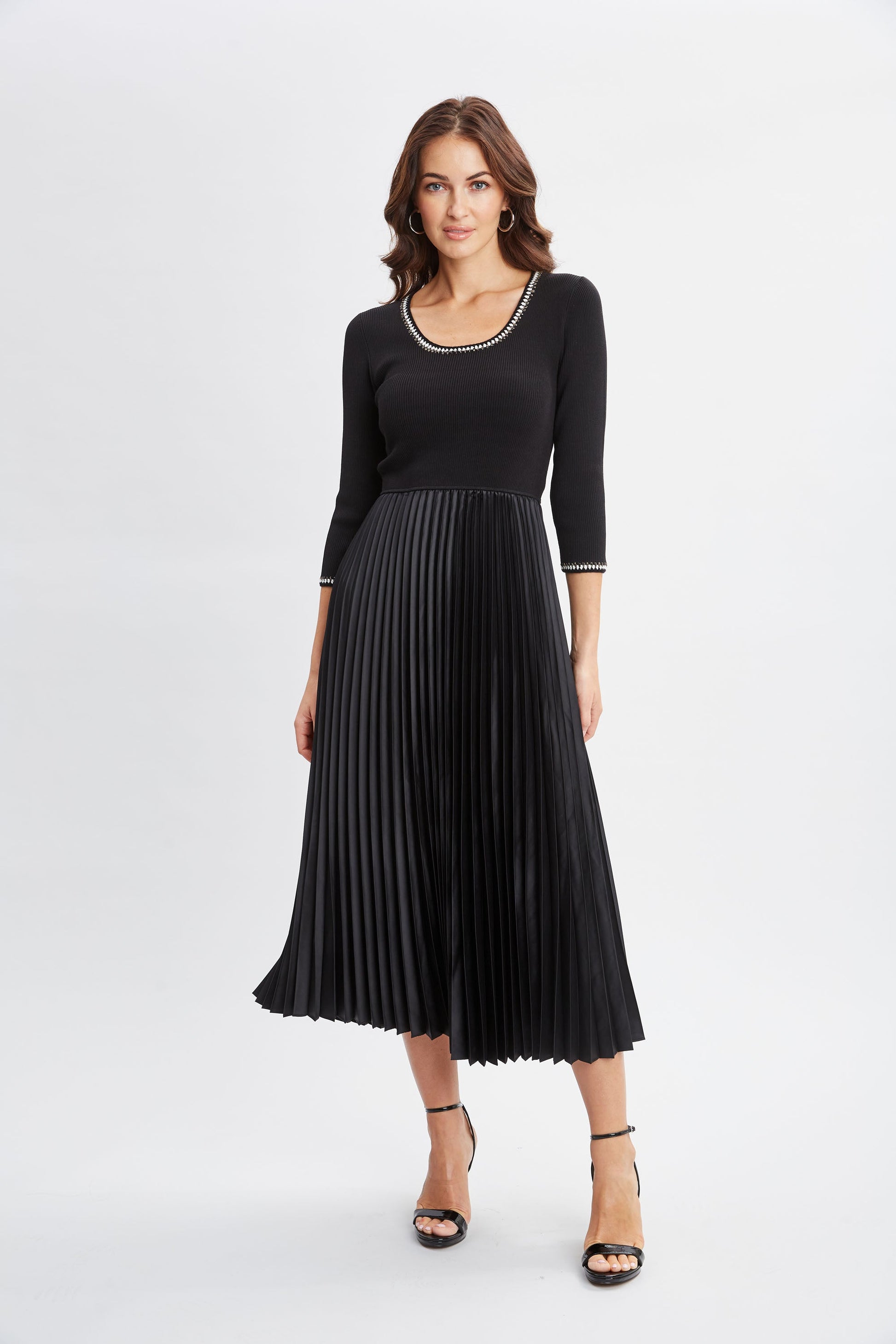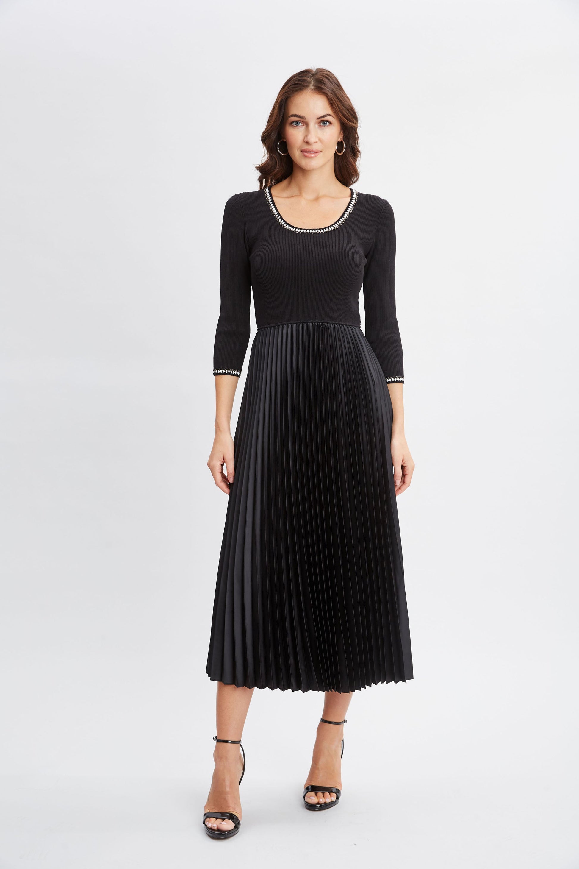 Contrast Trim Pleated Dress