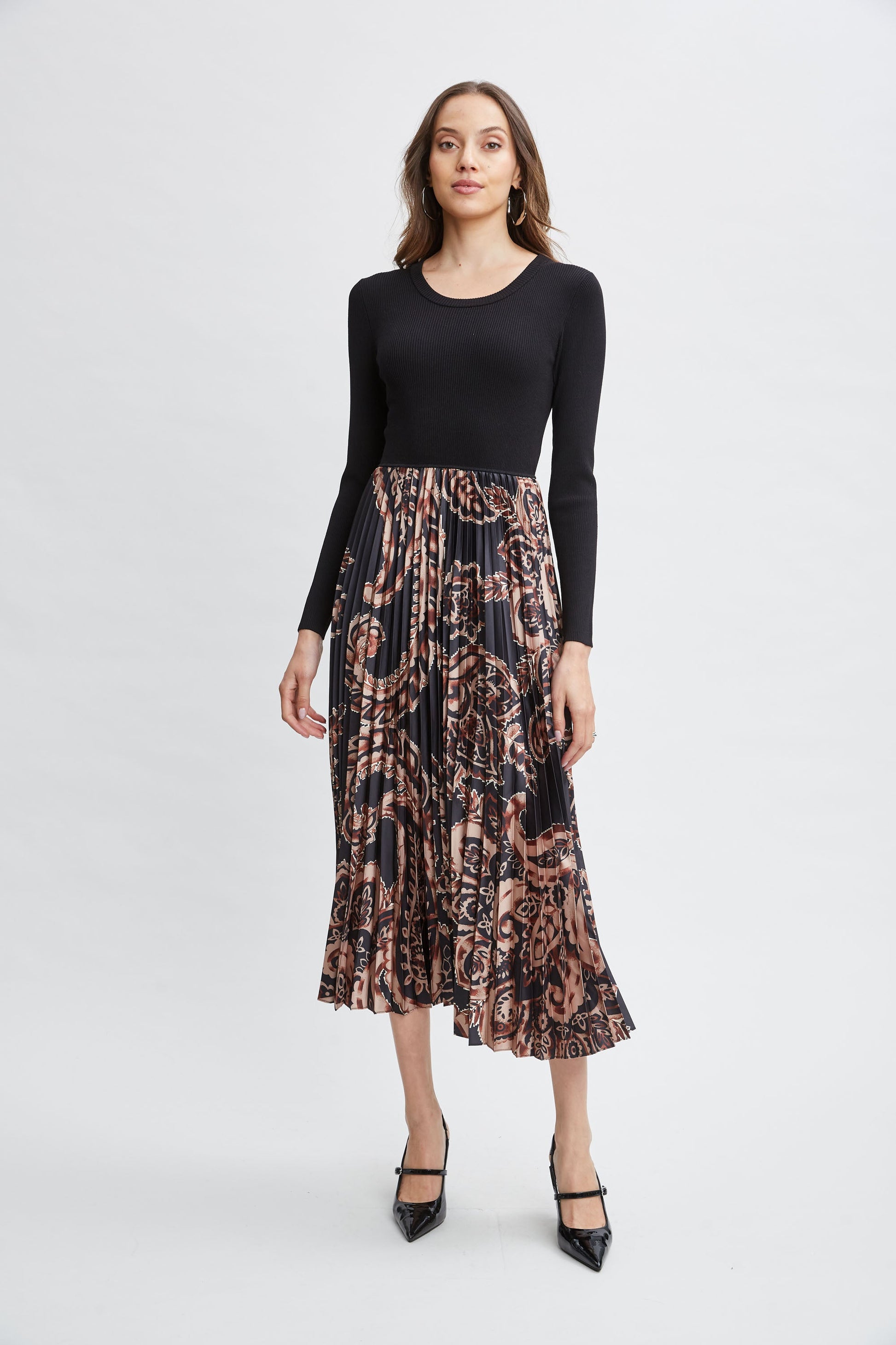 Paisley Pleated Midi Dress