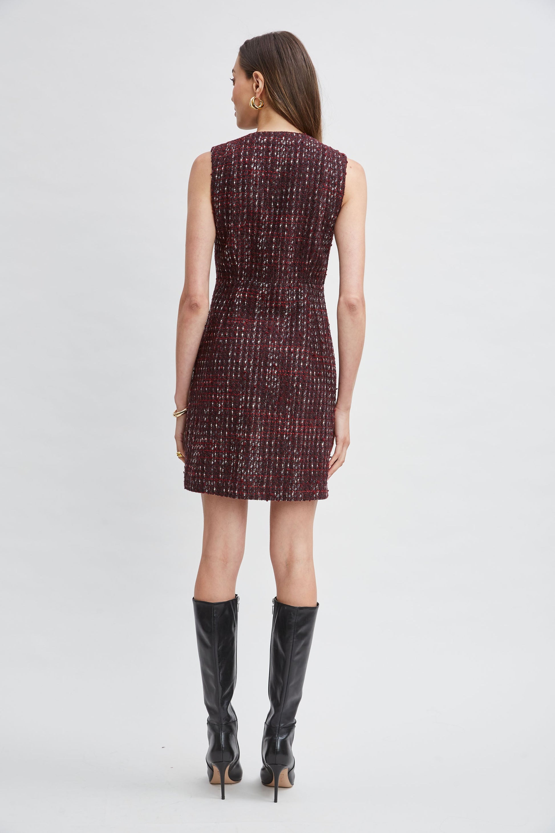 • Tweed Shift Dress with Gold Buttons & Zip Front Closure