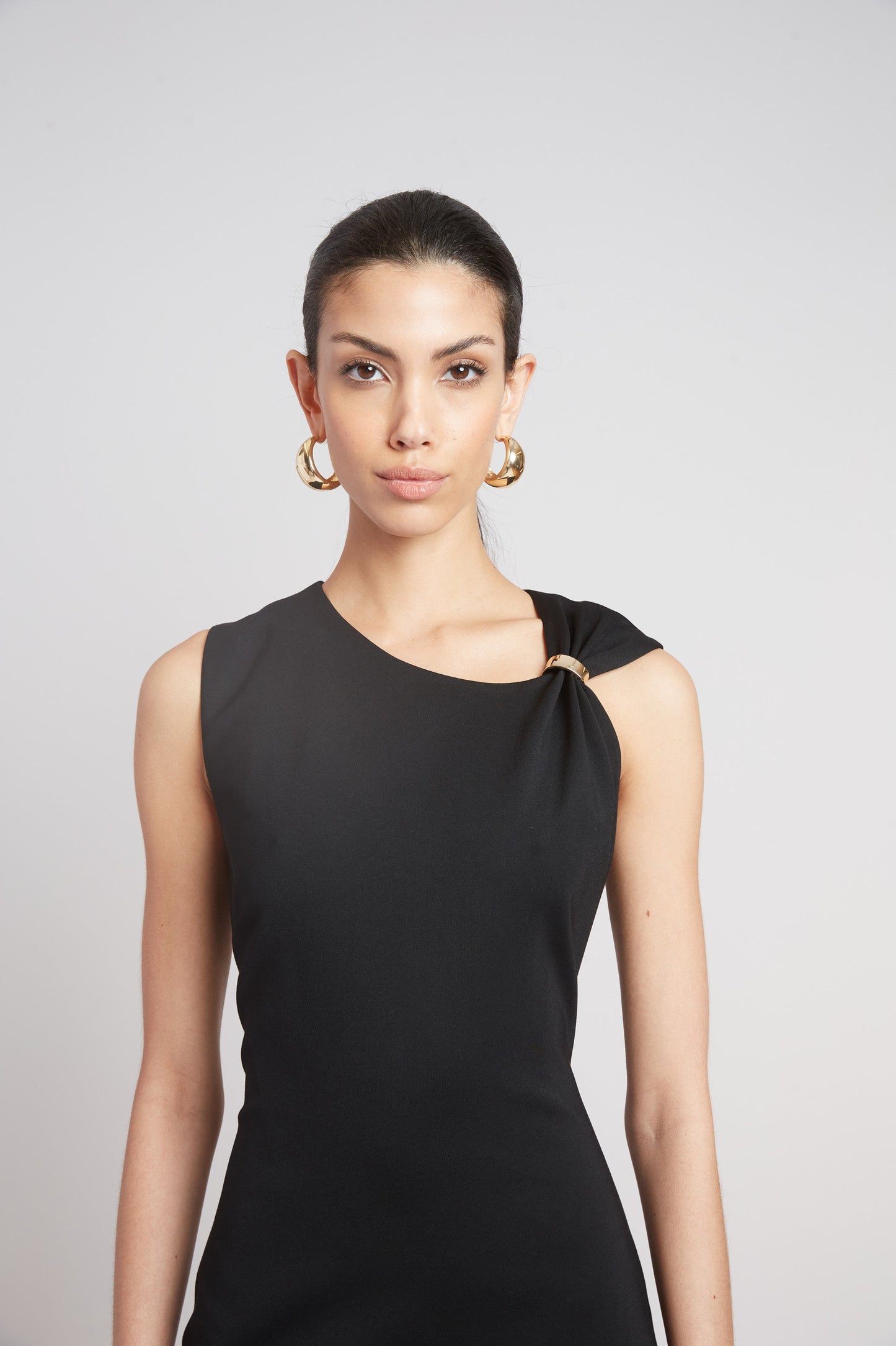 With a sculptural asymmetrical neckline and bold metal shoulder detail, the Gilded Dress captures a new dimension of ease and edge. Effortlessly transitioning from sunlit days to after-dark allure, it’s a singular silhouette made for summer’s most striking moments.