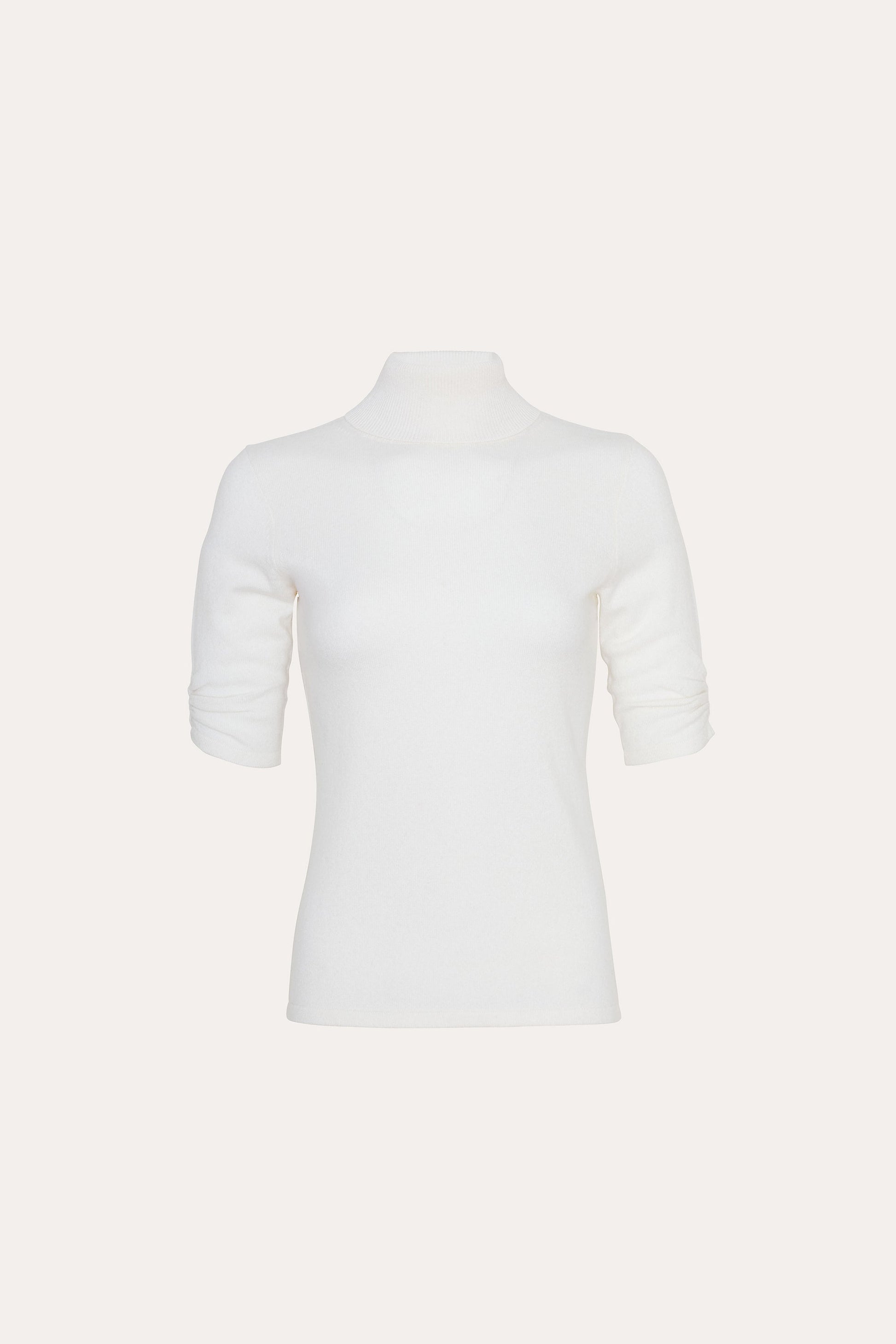 Minimalist polish in any weather. A wide turtleneck and ruching at the sleeves signal an attention to detail in design. Crafted from merino wool infused with cashmere, this a soft-to-the-touch sweater looks just as good with under a blazer as it does over denim.