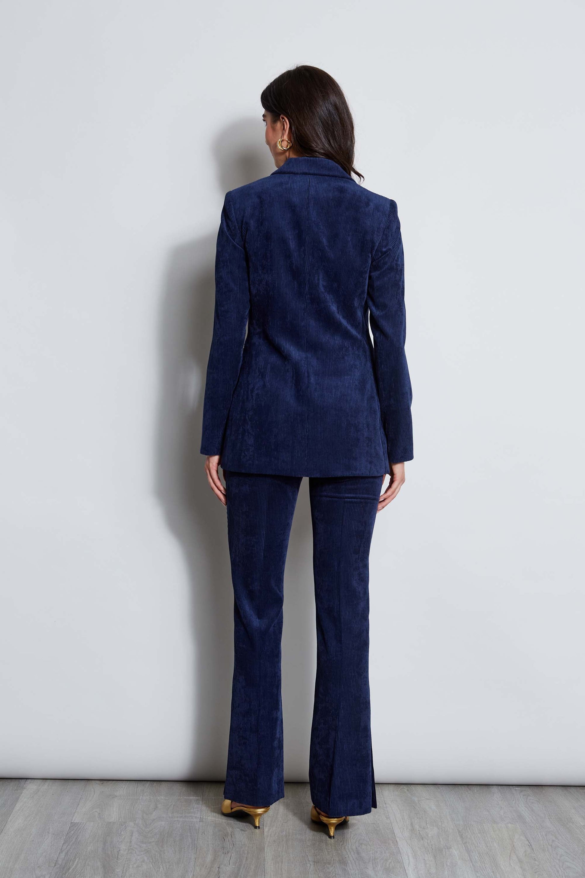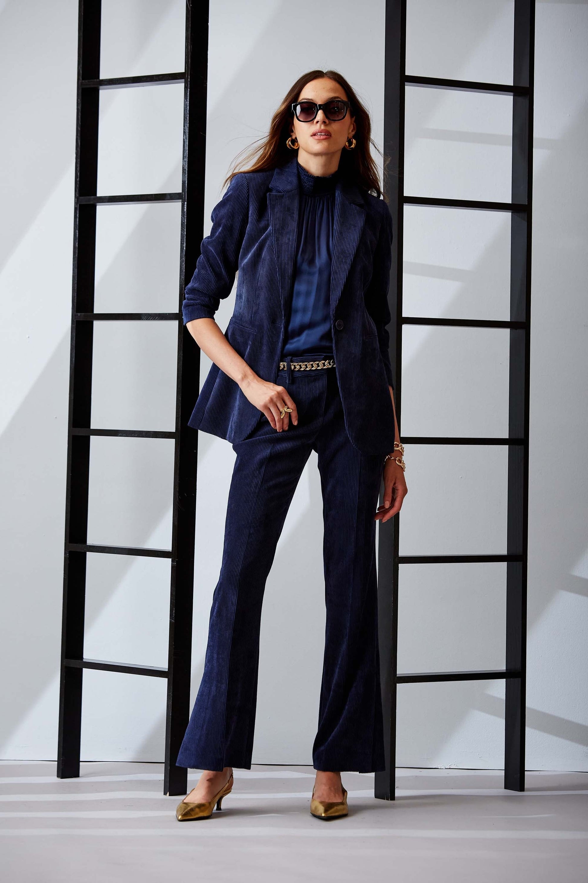 Borrowed from the boys but oh so femme! Sharp tailoring meets the lush touch and patina of Corduroy in our peaked lapel Single Button Blazer. Think of corduroy for day and night and mix it with denim, vegan leather and satin 24/7.