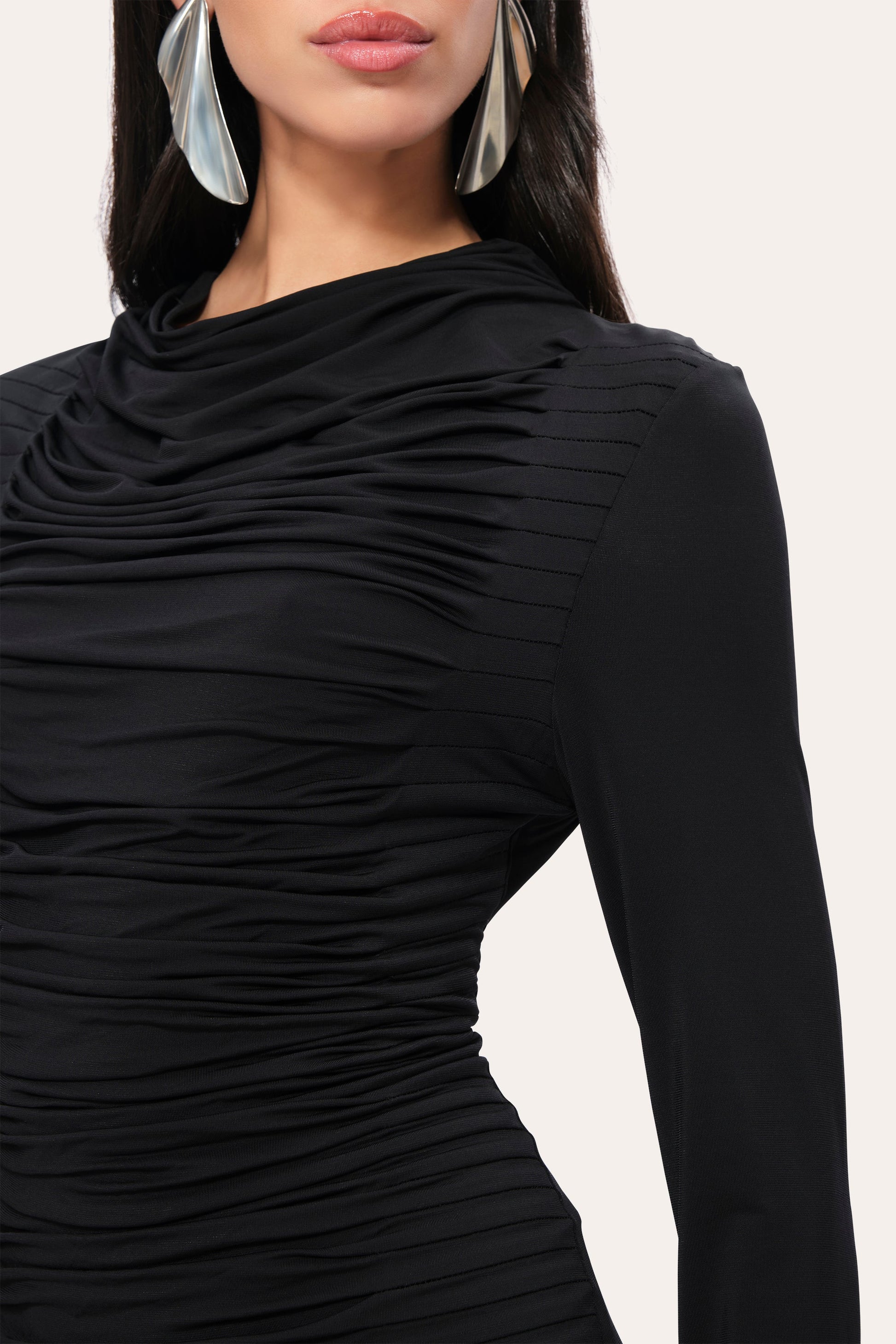 • Long Sleeve Mette Jersey Tucked Pleat Bodycon Dress