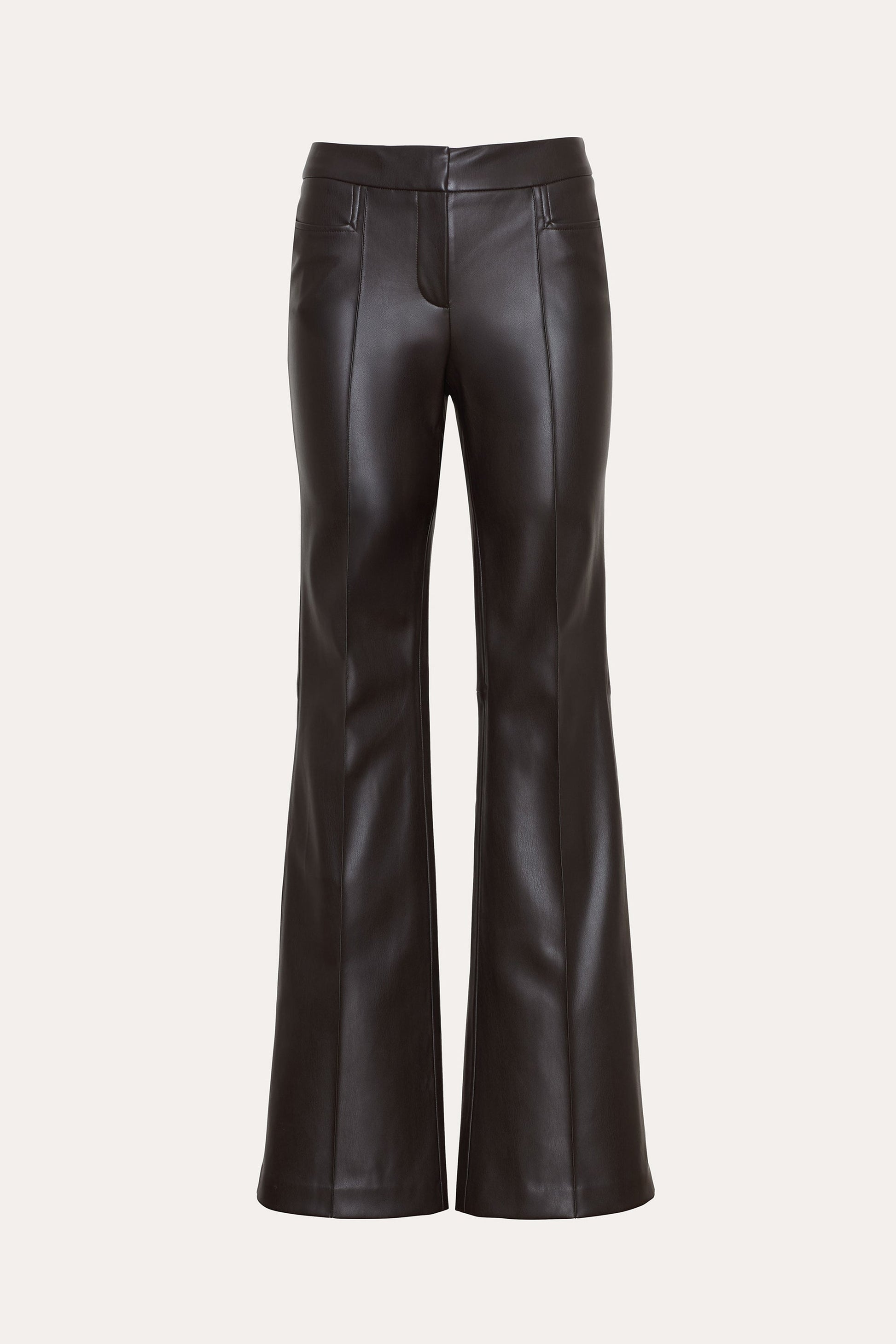 The vegan leather pant you’ve been waiting for. Tailored with seam detailing and a subtle flare, they're minimal and soft to the touch. Style with silk at the office or double down with leather accessories in the evening.