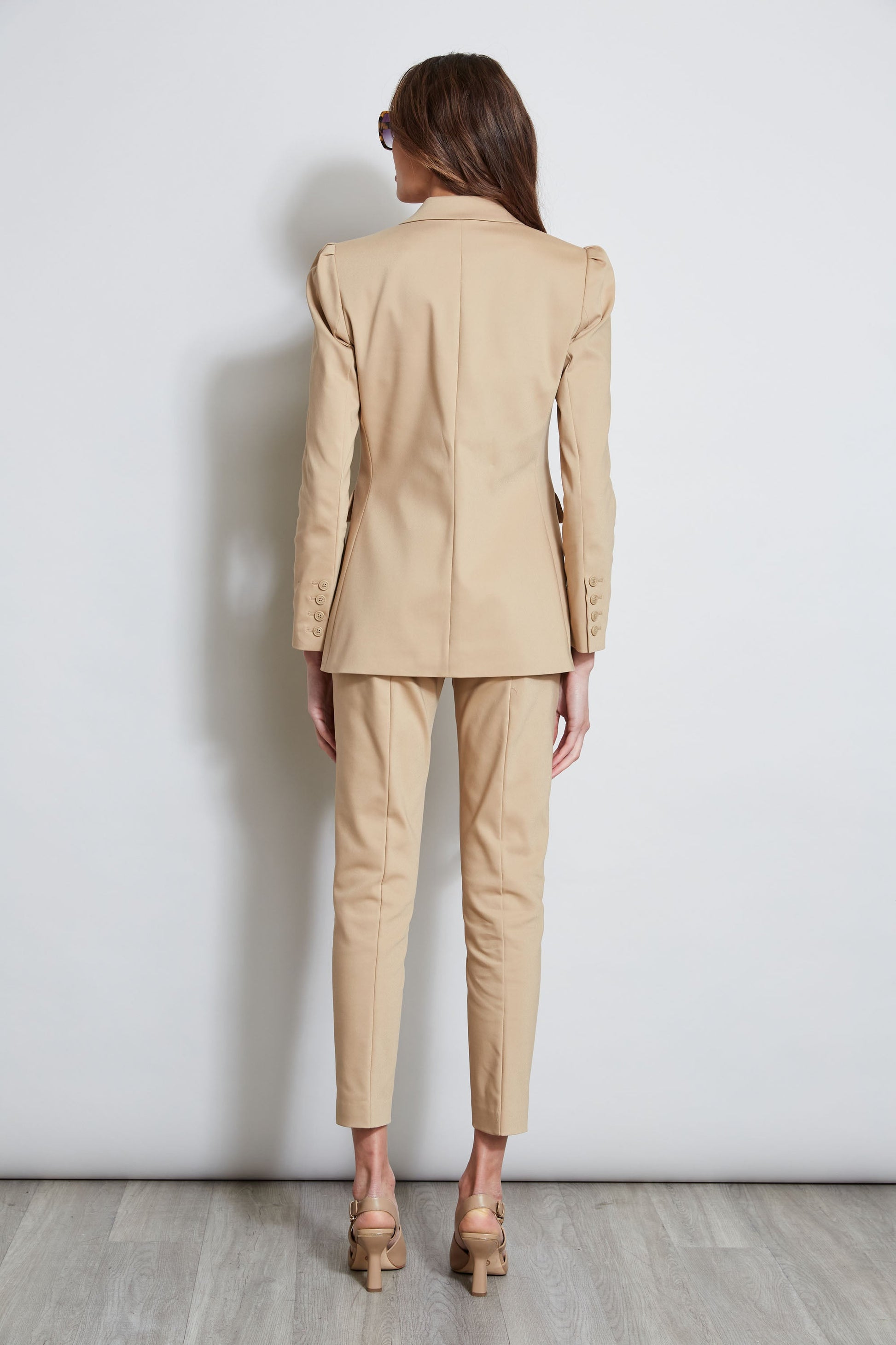 • Cotton Blend Puff Shoulder One-Button Slim Fit Blazer