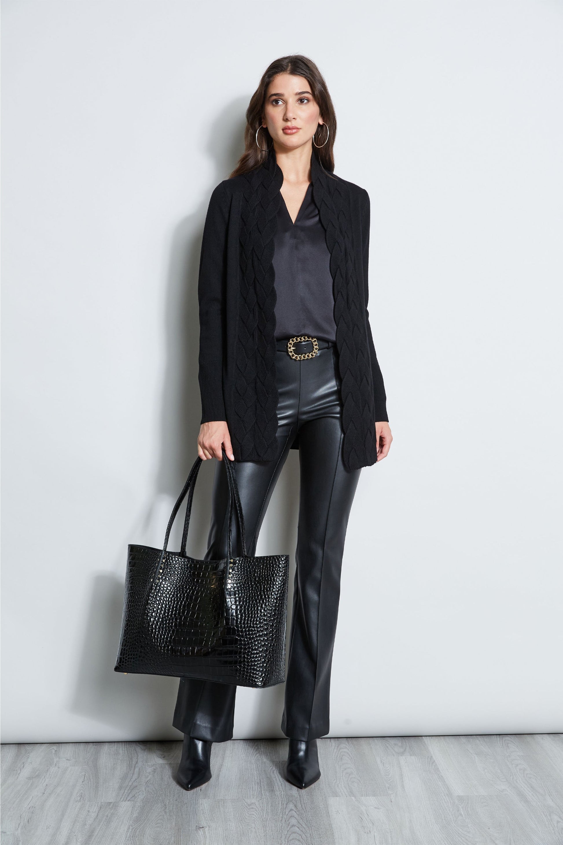 The intricate Cable Detail of our soft touch Merino Cardigan makes this sweater a must have fall layering piece. It will become your favorite go-to. Try wearing one of our Italian belts at the waist for a fresh take on sweater dressing.