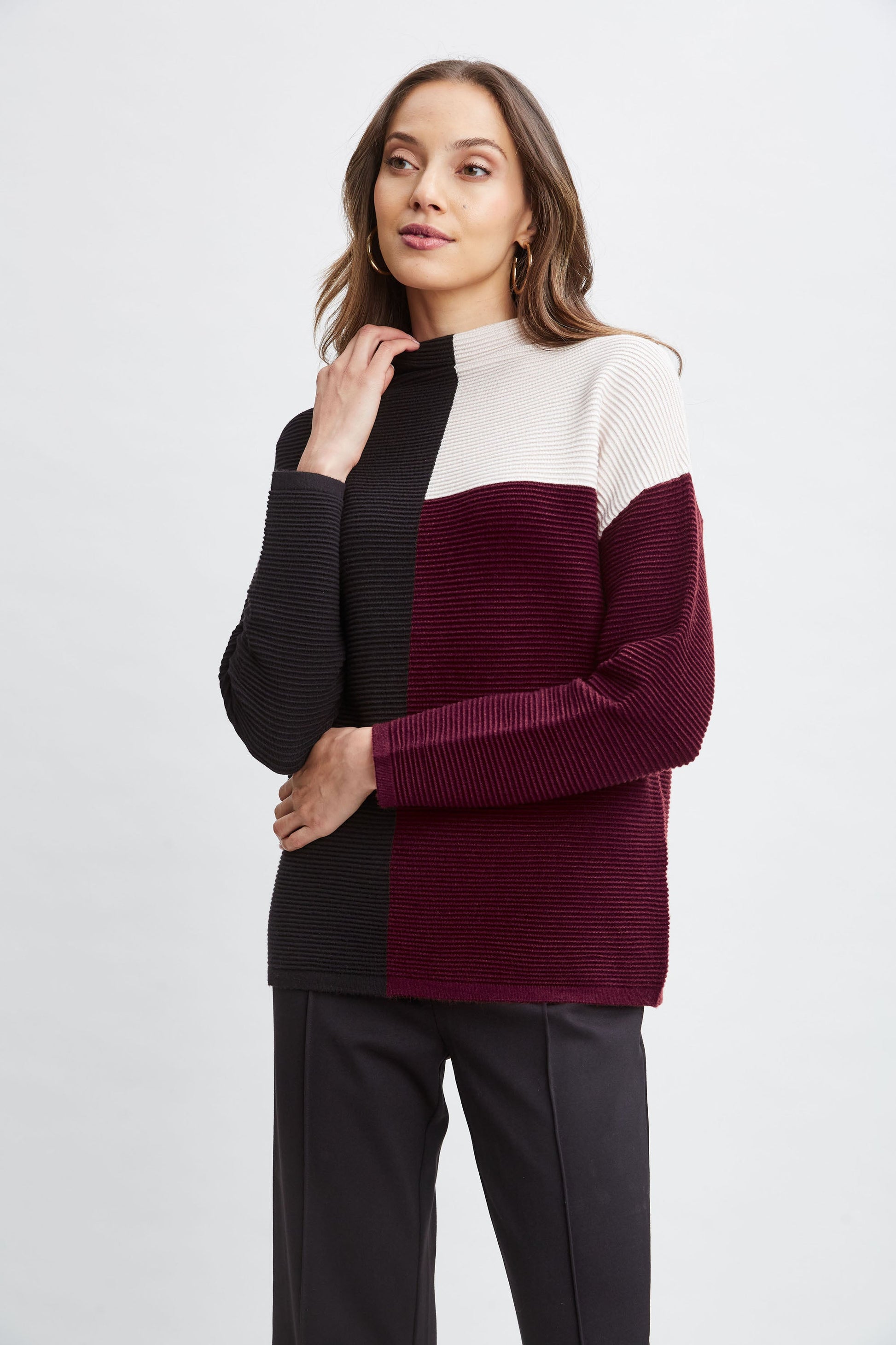 • T-Tahari Mock Neck Rib Colorblock Sweater