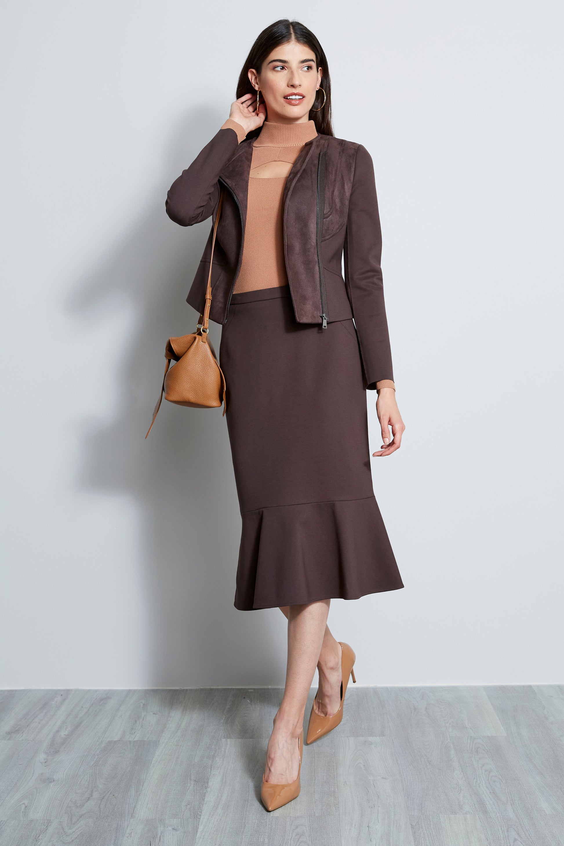 Invest in this elevated sweater that will quickly become a staple in your wardrobe. With a wide, mock tee neckline, this long sleeve sweater features an overlapping bodice layer that creates a sexy cutout detail. Paired with vegan leather, crepe pants, or our modern fit & flare skirt, this chic sweater is perfect for all season long.