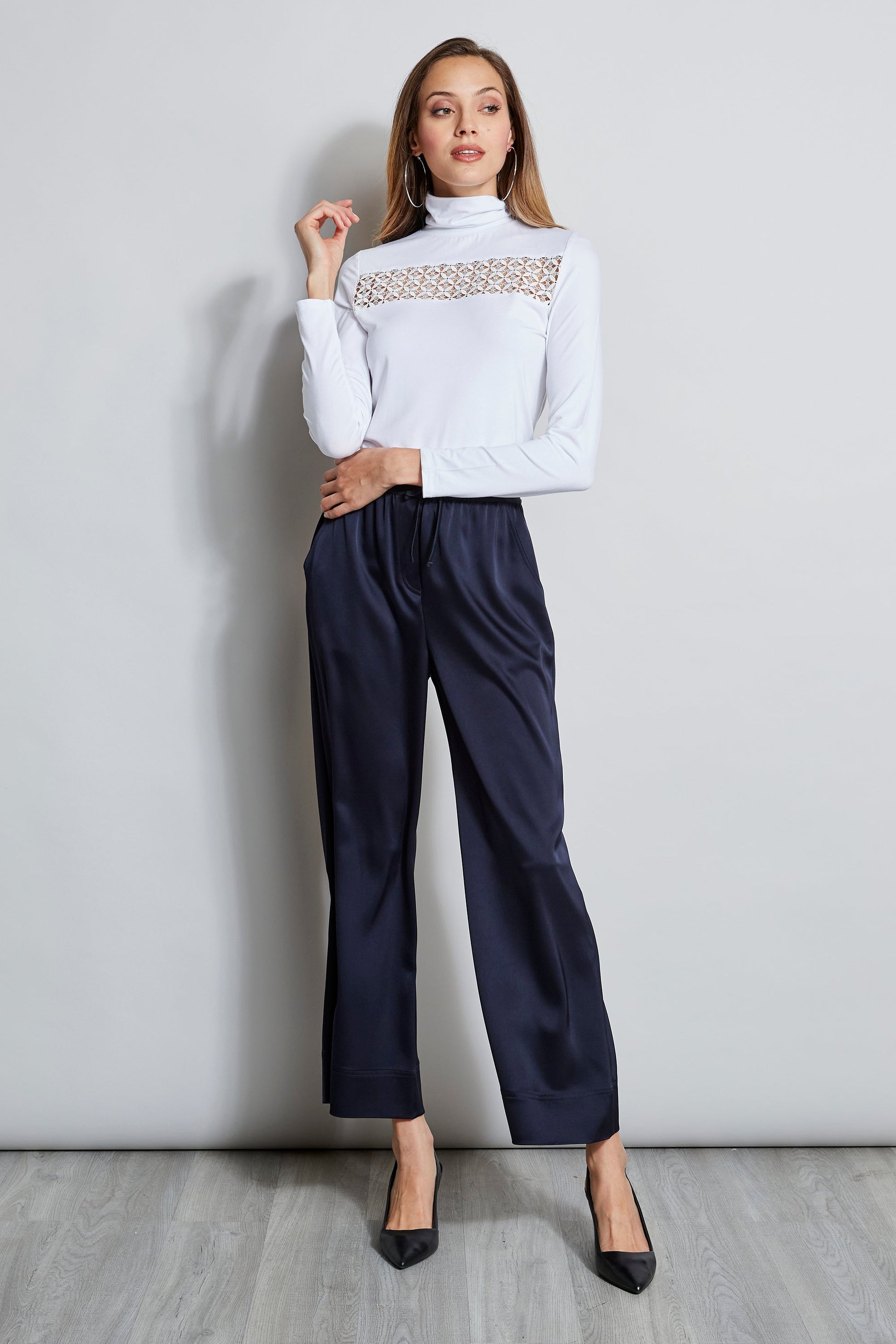 • Luxe Long Sleeve Modal Jersey Turtleneck T-shirt with Geometric Lace Panel