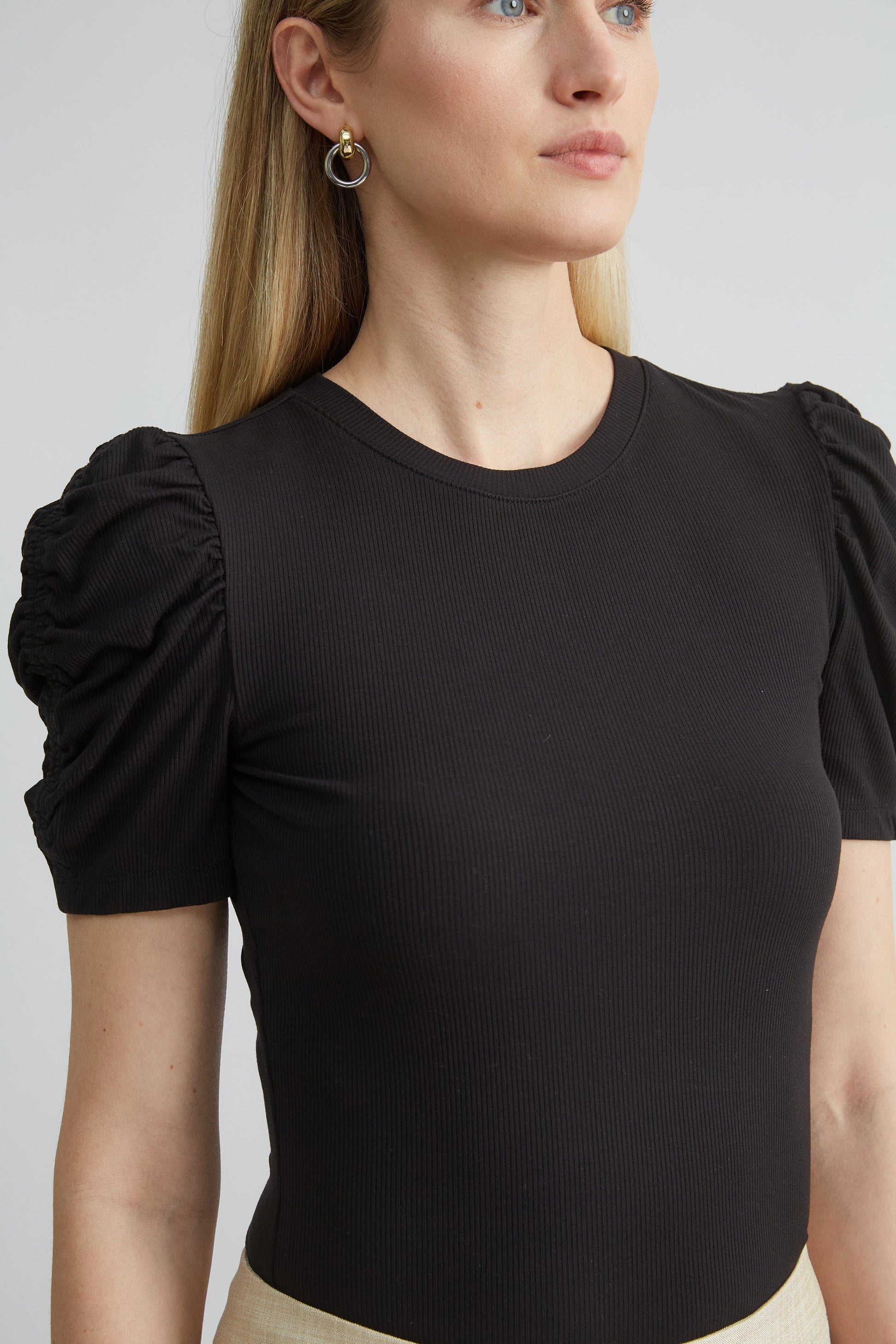 Puff Sleeve Rib Knit