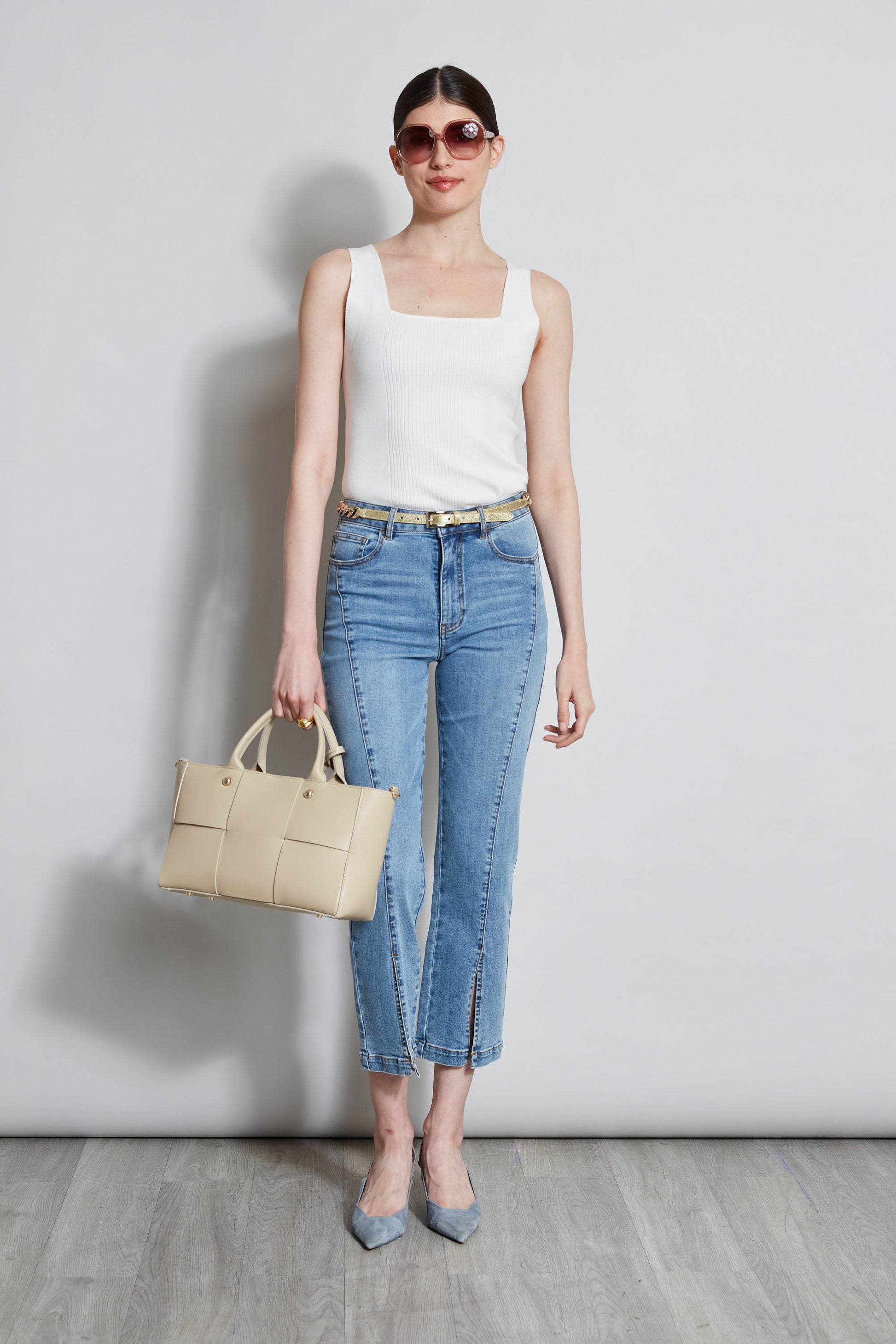 We love the modernity of our Ribbed Sweater Tank. The square neckline & engineered rib body skimming silhouette make it perfect for layering under its matching cardigan or wearing on its own.