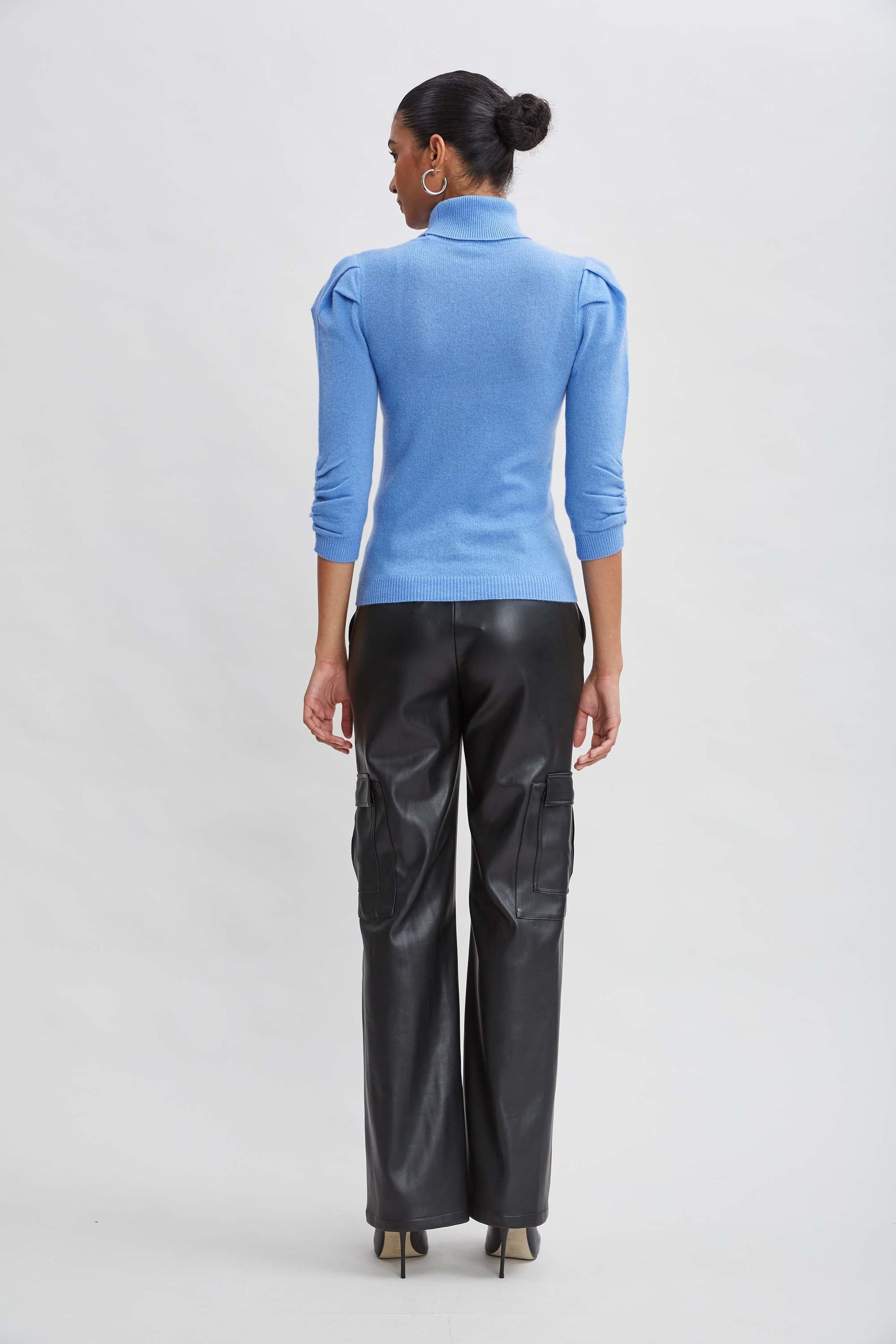 • Ruched 3/4 Sleeve Turtleneck Sweater