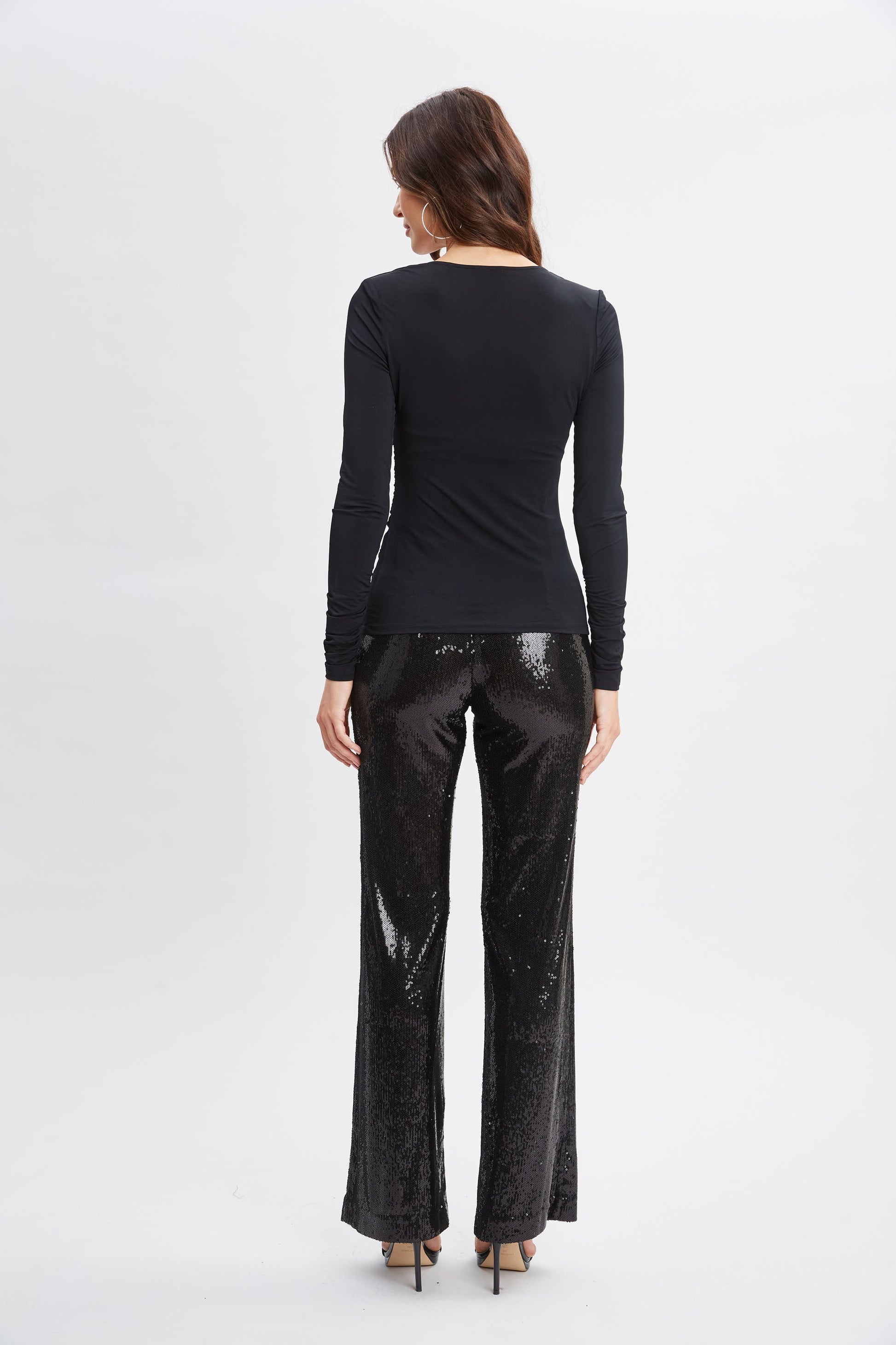 A knit with a wow factor. The modern ruched front gives artistic expression to our Luxe Viscose Stretch Jersey Tee. Dress it down with Jeans or up with Elie's Crepe Pant.