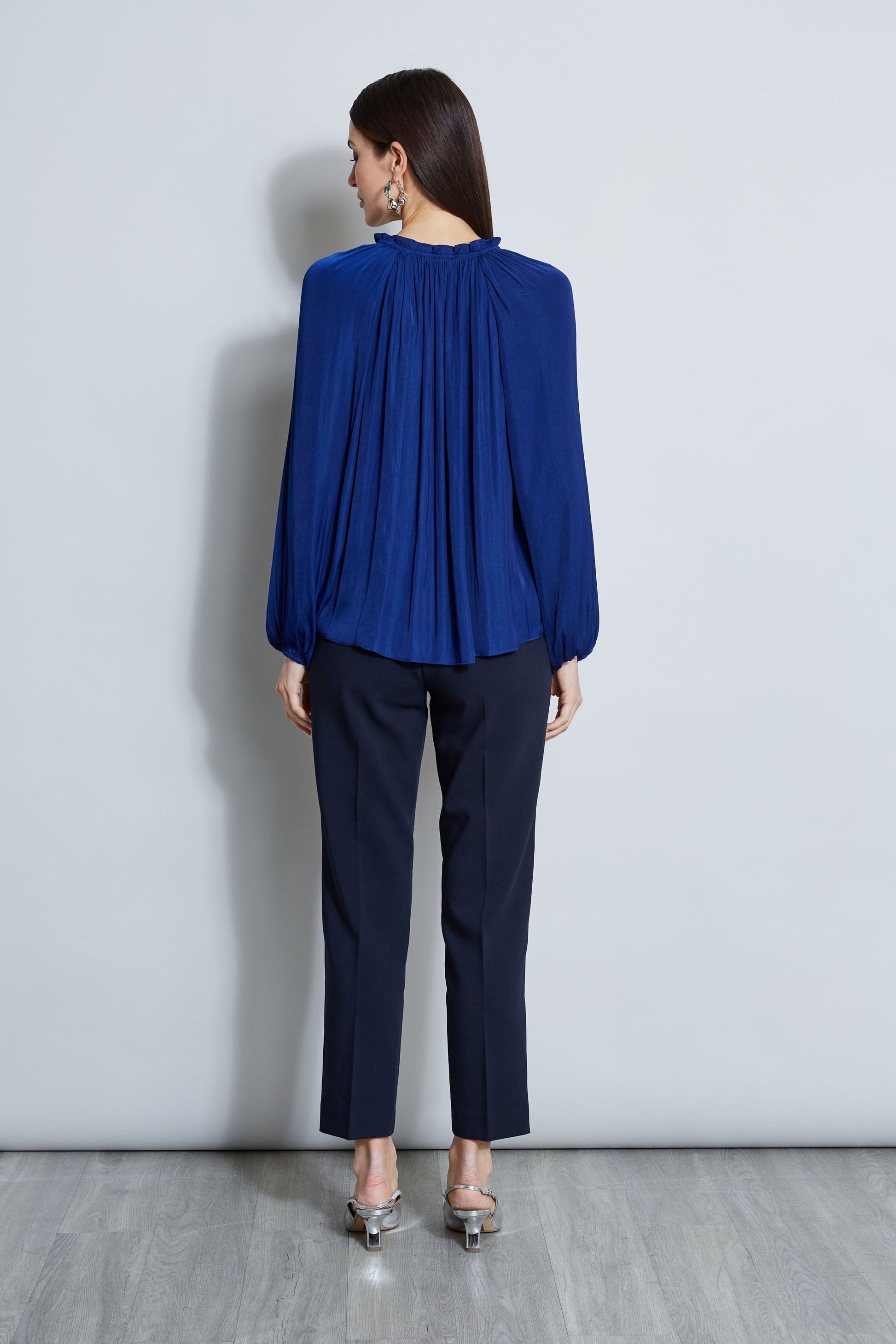 It's all in the details. Romantic & feminine, our pleated long sleeve shirt features a split tie neckline & pleated ruffle bodice detail. With its long blouson sleeves & effortless fit, this style is a year-round essential.