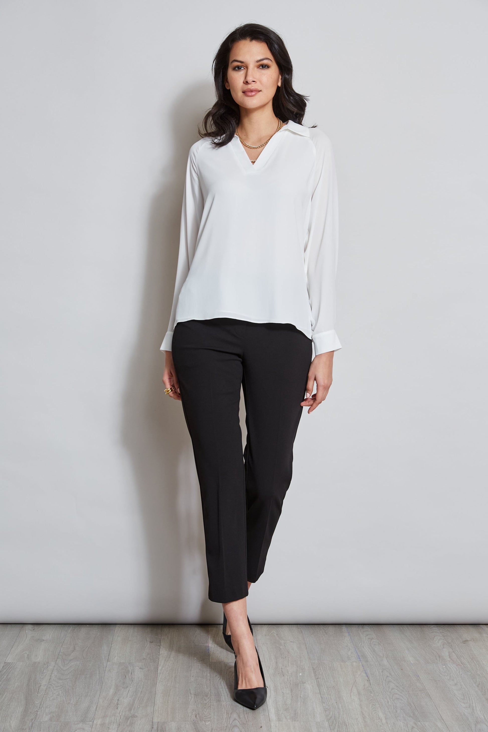 Easy & Modern, our Split Neck Shirt is designed with a shirt collar & v-neckline. A perfect transitional piece for dressing up or down, you will love the look & feel of this chic top. Wear it from day to dinner, every day, everywhere.